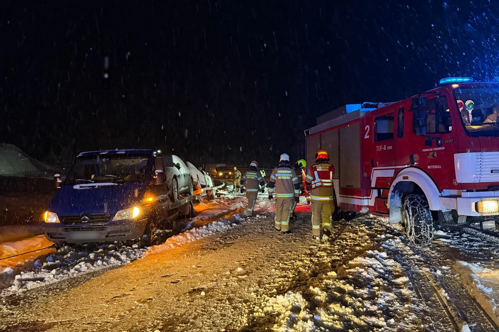 Transporter bei Schneefall am Pass Thurn verunglückt