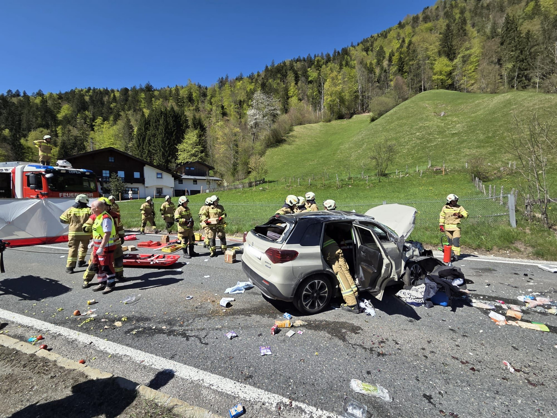 Auto überschlägt sich nach Crash mit Lkw auf B311