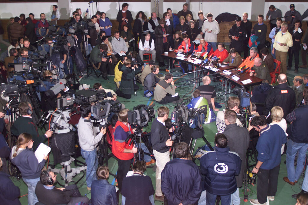 Im Bild: Die Pressekonferenz der Einsatzorganisationen am 14. November 2000.