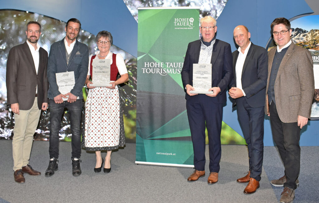 Den Abschluss bildete die Verleihung des Hohe Tauern Tourismus Awards an drei herausragende Persönlichkeiten oder Institutionen in unserer Region. Andrea Rieder (Bio-Bäuerin & Kräuterexpertin im Hollersbacher Kräutergarten), Franz Meilinger (Weyerhof Boutique Hotel & Restaurant) und Horst Maier (Habachklause Familien- und Kinderhotel) dürfen den Hohe Tauern Award entgegennehmen und freuen sich über die Auszeichnung.