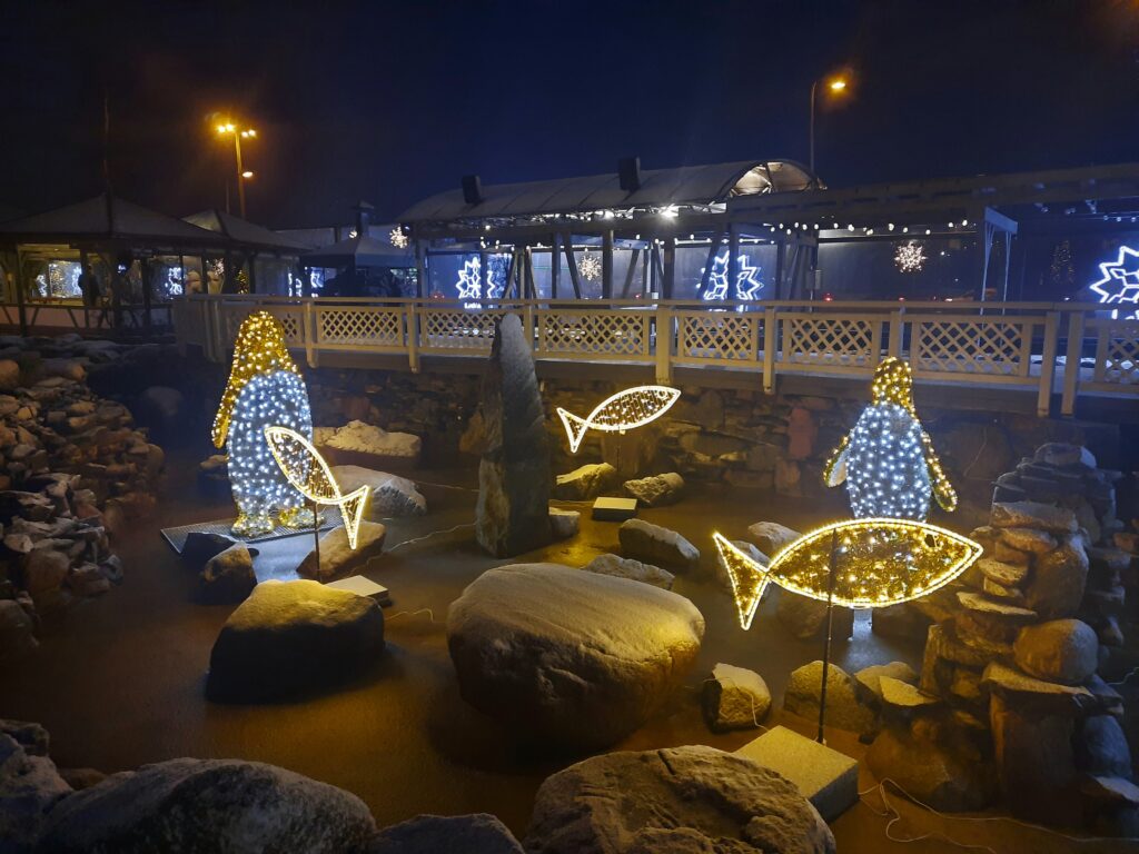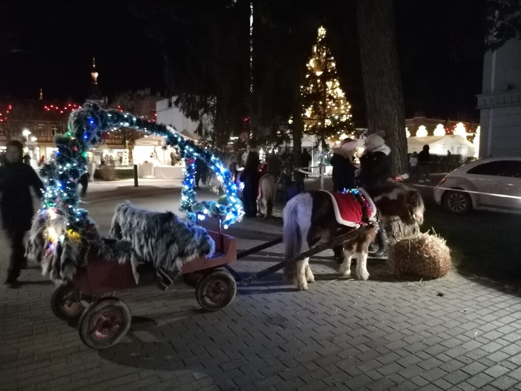 Weihnachtsmärkte in Riga am Abend bei wenig Schnee, -10 Grad und Wind