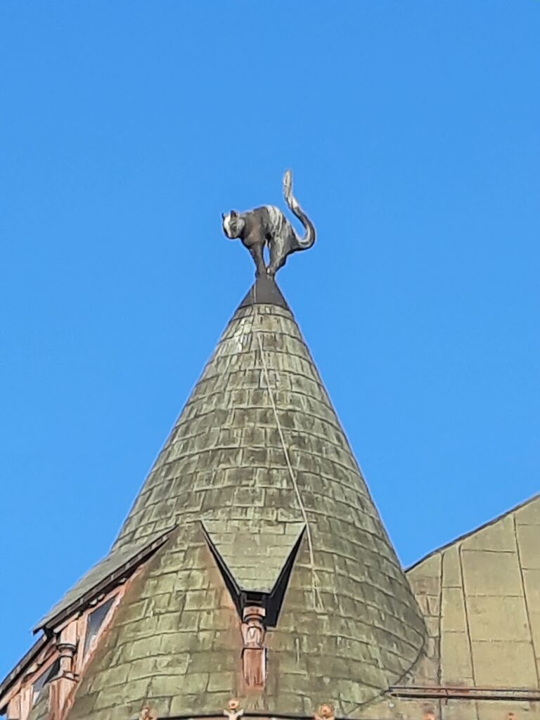 Die Katzenfigur wurde angeblich als Zeichen des Unmuts eines Kaufmanns angebracht, der nicht in die Große Gilde aufgenommen wurde. Um seinen Ärger öffentlich zu demonstrieren, zeigt daher die Katze mit ihrem Hinterteil zum Gebäude der Gilde.