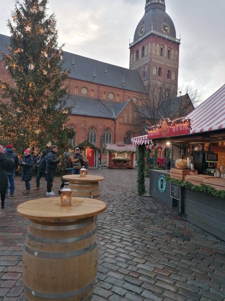 Als es allmählich dunkler wurde besuchten wir den Weihnachtsmarkt am Domplatz mit seinen vielen, kleinen Ständen und den lettischen Köstlichkeiten.