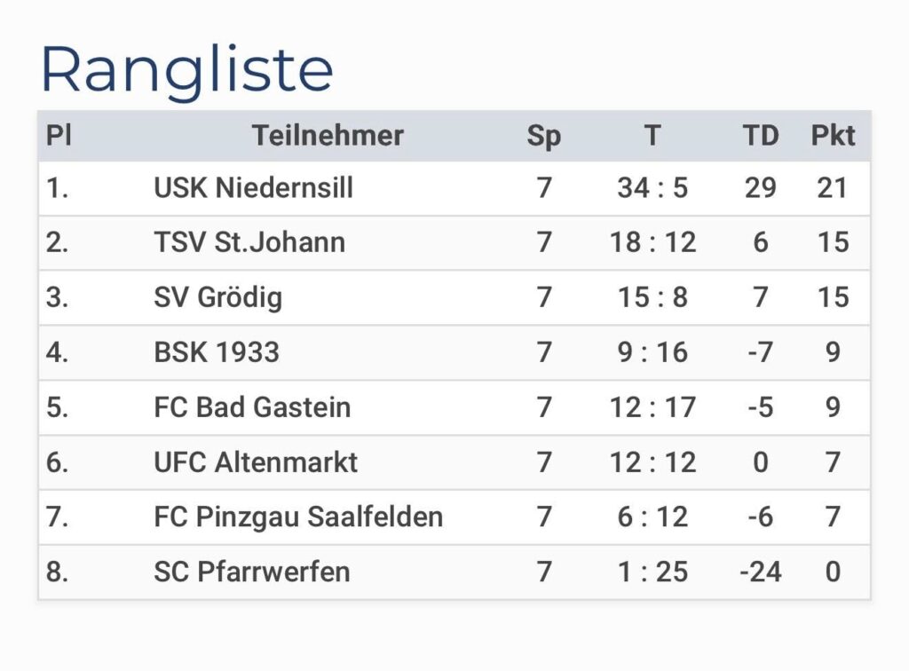 Mit dabei waren zahlreiche renommierte Teams wie der SV Grödig, der FC Pinzgau Saalfelden, der UFC Altenmarkt, der SC Pfarrwerfen, BSK 1933, der TSV St. Johann sowie der FC Bad Gastein. Die Niedernsiller präsentierten sich dabei vom ersten Spiel an hochkonzentriert, spielstark und als echtes Team.