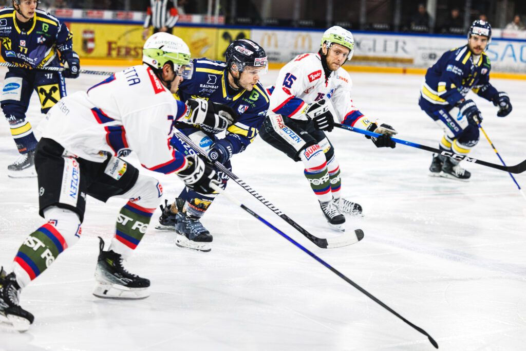 B. Welychka verkürzt im Powerplay für die Rittner Buam.