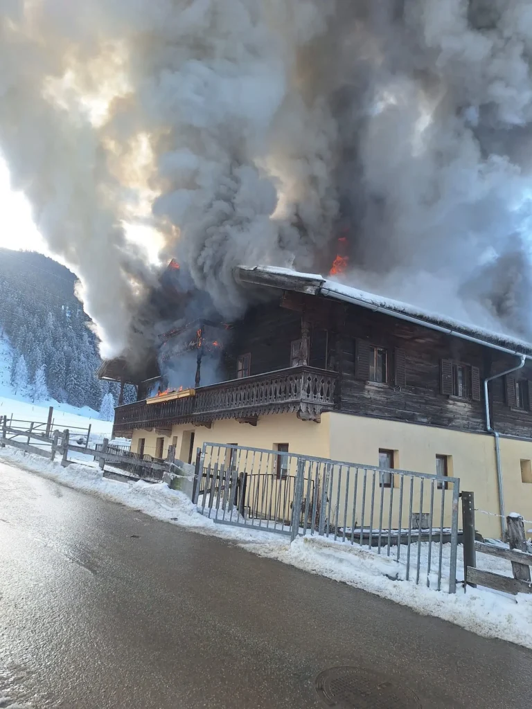 Auf einem Bauernhof in Stuhlfelden im Pinzgau ist am Samstagnachmittag ein verheerender Brand ausgebrochen. Gegen 13.15 Uhr geriet das Wohnhaus aus bislang unbekannter Ursache in Vollbrand. Aufgrund der Lage wurde Alarmstufe 3 ausgelöst.