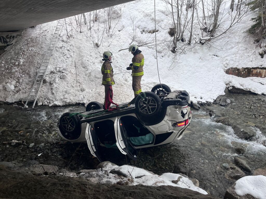 Pkw-Unfall in Hinterglemm: Fahrzeug im Bachbett gelandet