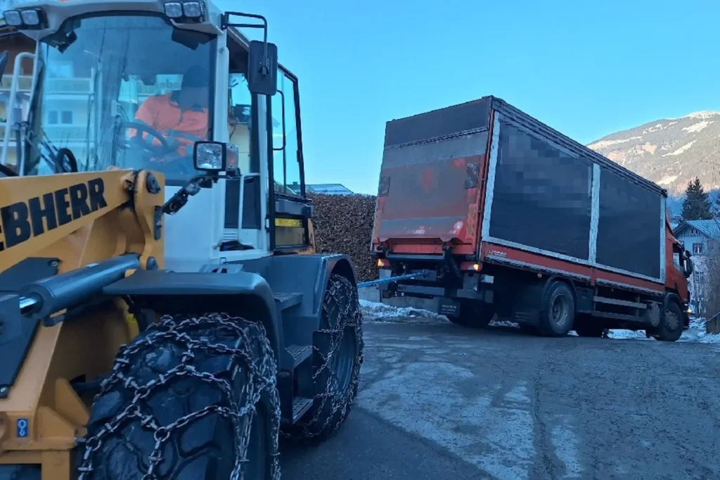 Feuerwehr befreit festgefahrenen Lkw in Zell am See