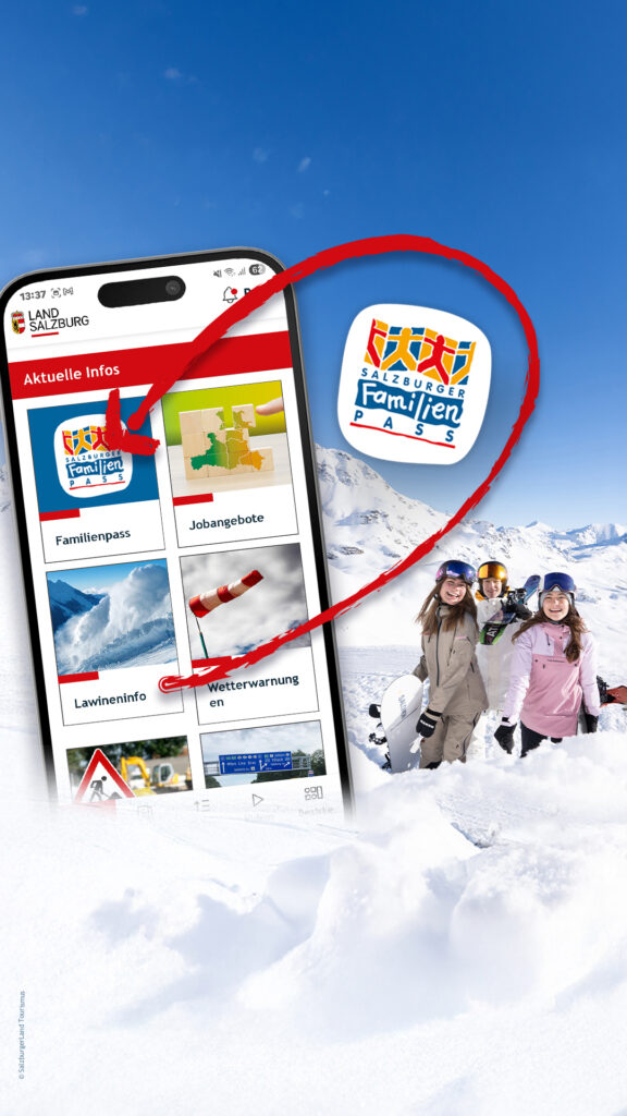 Die Familienpass-App ist seit Dezember umgezogen und ab sofort in der Land Salzburg App zu finden. Mit der Aktivierung des digitalen Familienpasses können alle Vorteile unterwegs genutzt werden. Man erhält Zugriff auf Gutscheine, Elternbriefe, Vorteilspartner und vieles mehr.