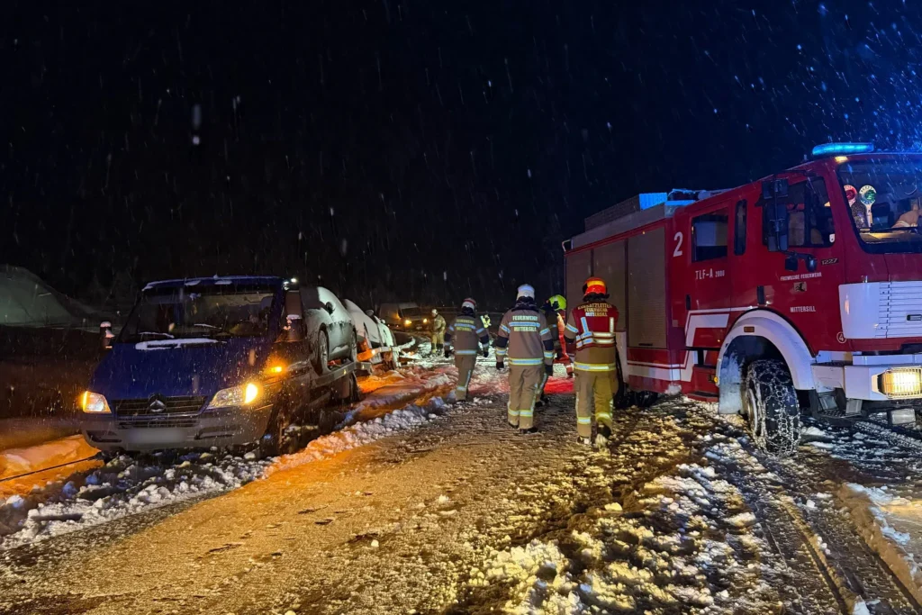26 Feuerwehrkräfte bei Fahrzeugbergung in Mittersill im Einsatz