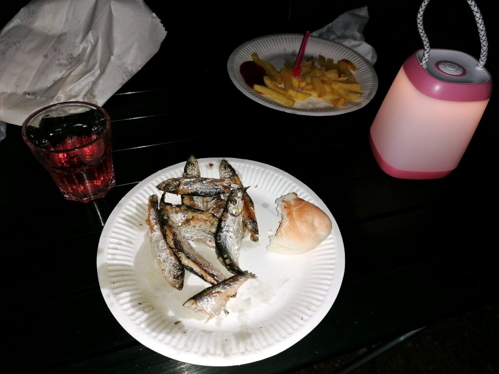 Trotz dieser Unannehmlichkeiten war der Kiesstrand des Campingplatzes ein echtes Highlight. Das Wasser war klar und angenehm warm, ideal für eine entspannende Abkühlung nach der langen Fahrt. Im September war die Wassertemperatur noch einladend, und wir verbrachten einige schöne Stunden am Strand. Zuerst erkundeten wir noch das Dorf, aber leider gab es dort keine netten und guten Restaurants. Außerdem waren die Preise extrem hoch. Zum Abendessen gab es daher im Camp nur kleine, frittierte Sardinen und Pommes als einfache Mahlzeit.