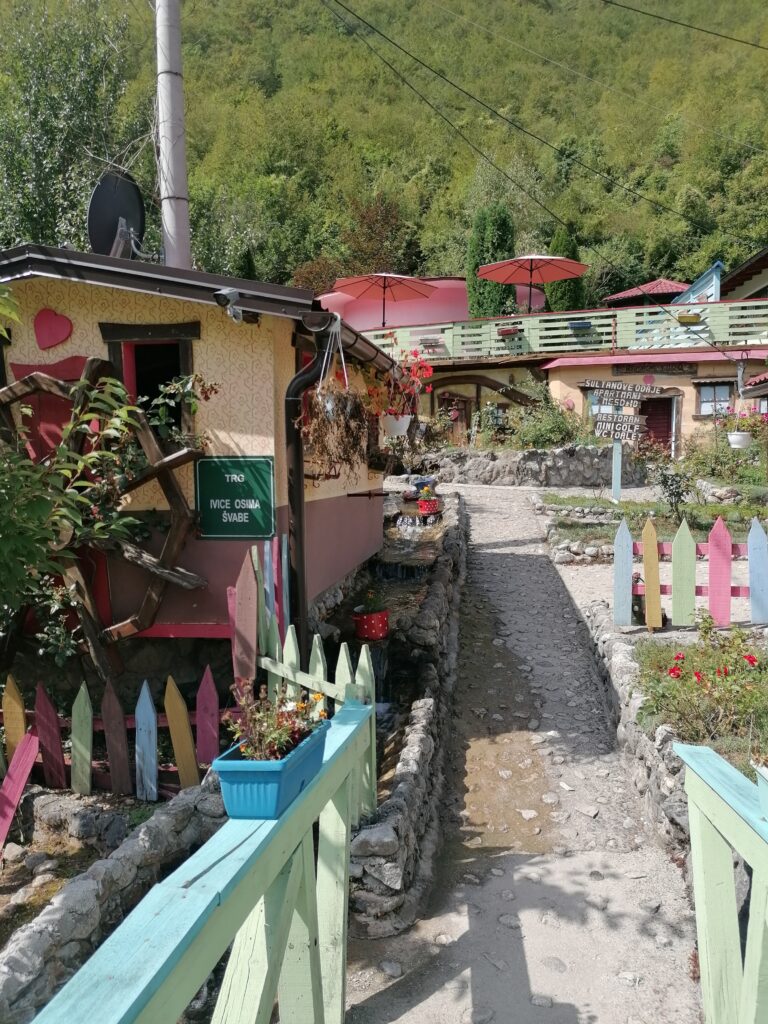 Das Eco-Village liegt idyllisch an einem kleinen Bach und besteht aus vielen bunten, charmanten Bungalows. Im angeschlossenen Restaurant werden typische bosnische Spezialitäten serviert – sehr empfehlenswert!