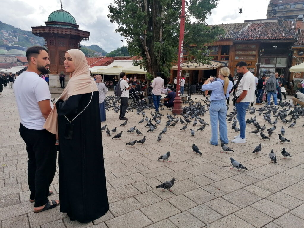 Nach der Stärkung geht der Rundgang weiter: Wir passieren das Genozid-Museum und die geschlossene Kathedrale, bevor wir die Gazi-Husrev-beg-Moschee erreichen, die größte des Landes und ein eindrucksvolles Beispiel für die osmanische Architektur.