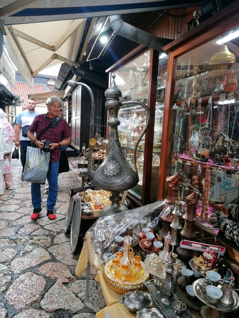 Anschließend besuchen wir den Basar von Bascarsija, wo moderne Läden vor allem Lederwaren anbieten und in den traditionellen Geschäften vor allem Kupferwaren angeboten werden. Oft lässt sich ein hervorragendes Café mit einer großen Auswahl an süßen Leckereien finden – perfekt für eine bosnische Kaffee- und Baklava-Pause.