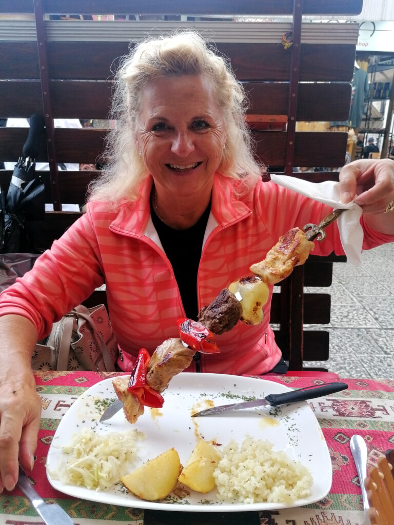 Zum Abendessen genießen wir in einem der vielen kleinen Lokale der Altstadt eine großzügige Portion sehr schmackhaftes Lamm mit Kartoffeln, Reis und einen gigantischen Schwert-Spieß.