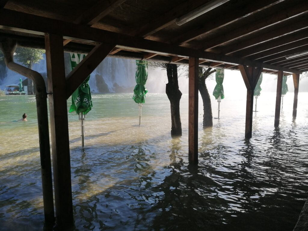Zu unserer großen Überraschung standen die Restaurants mit Stühlen und Tischen teilweise unter Wasser. Schuld daran dürften die massiven Regenfälle der letzten Tage gewesen sein.