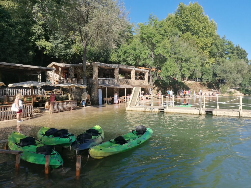 Direkt daneben liegt das Autocamp „Raj u Raju“, wunderschön am Fluss gelegen. Wer im Restaurant konsumiert, darf dort kostenlos übernachten. Der Juniorchef ist ausgesprochen freundlich und spricht sehr gut Deutsch. Das Camp selbst bietet einige wenige Stellplätze auf einer Wiese direkt am Wasser – mit kleinen Gumpen zum Baden sowie einfacher Dusche und WC. Besonders erwähnenswert: der frisch zubereitete Fisch war hervorragend!