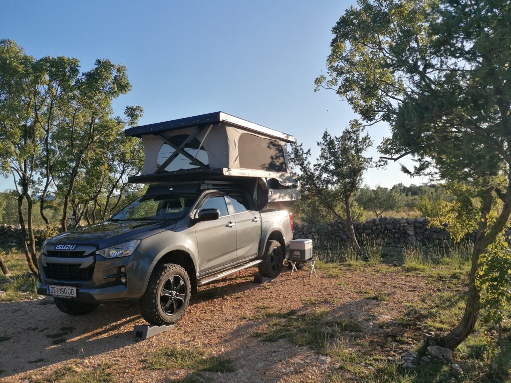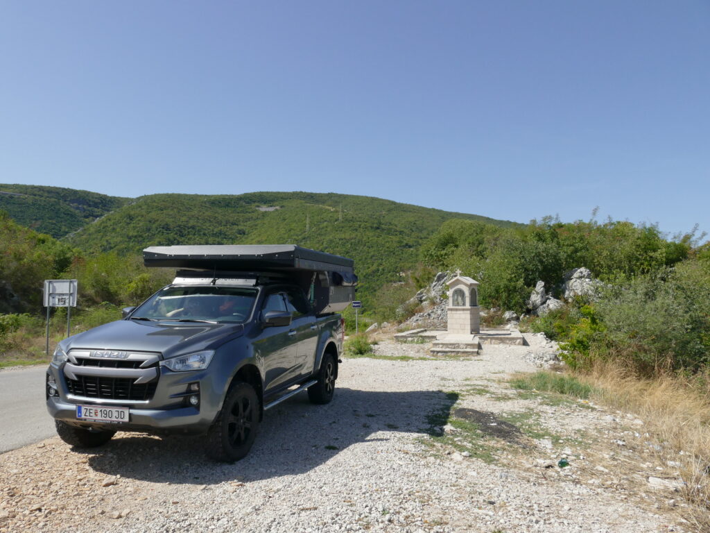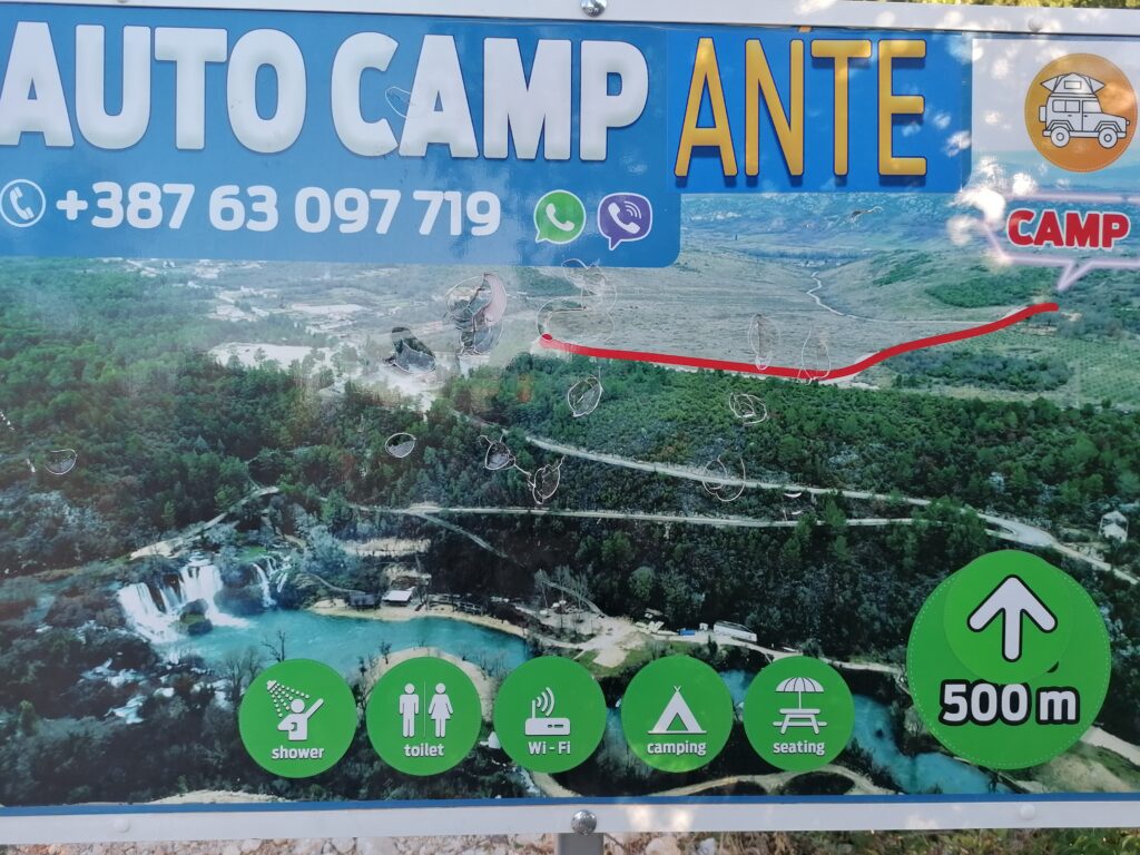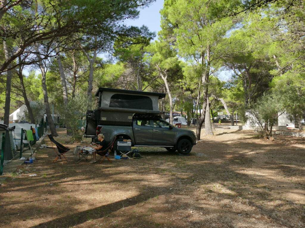 Das „Autocamp Ante“ liegt perfekt auf einer Hochfläche mit Ausblick auf die Berge und hat sehr schöne Stellplätze unter Bäumen und Büschen. Es gibt moderne Duschen und Toiletten und einen kleinen Shop. Für die Übernachtung bezahlten wir € 25,00.