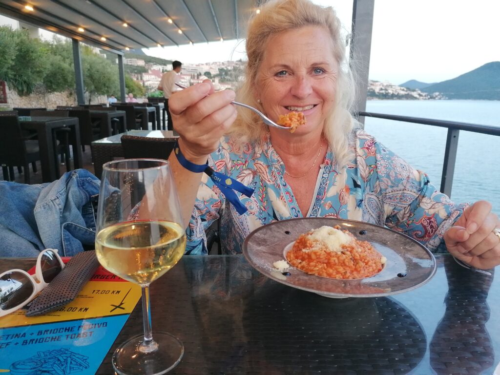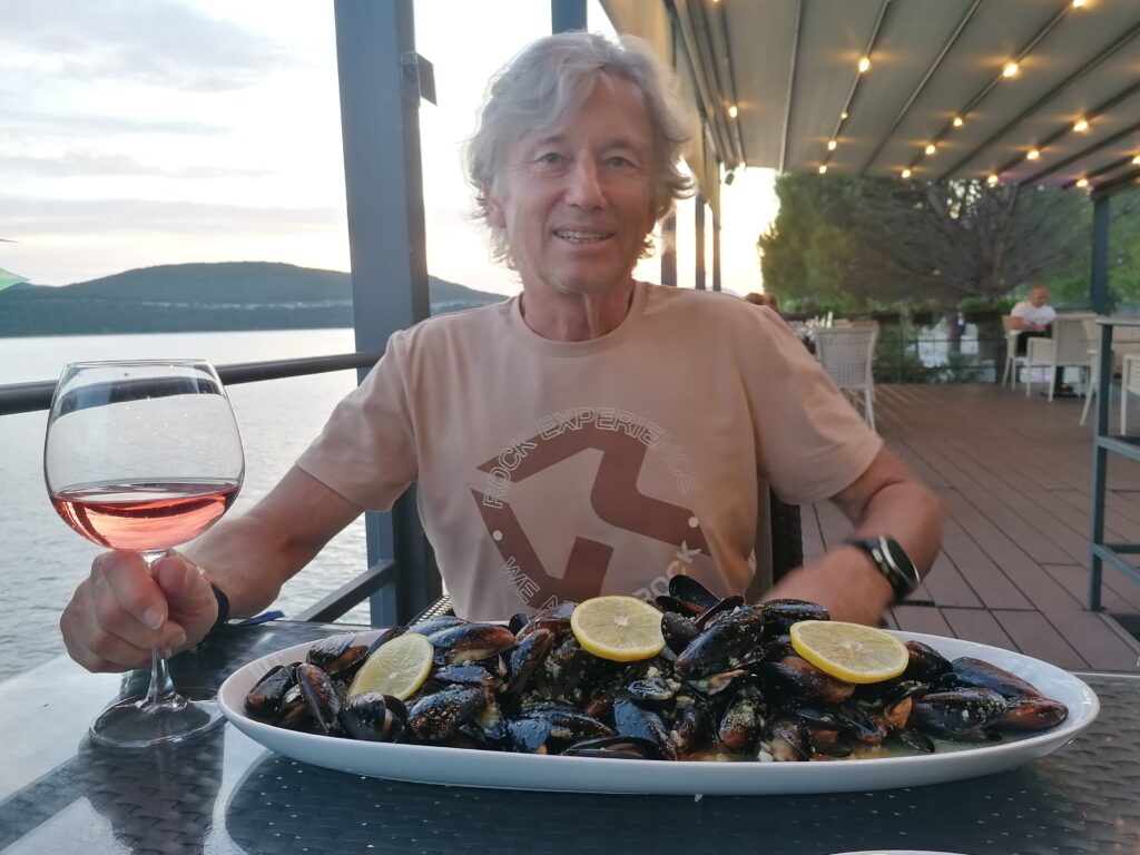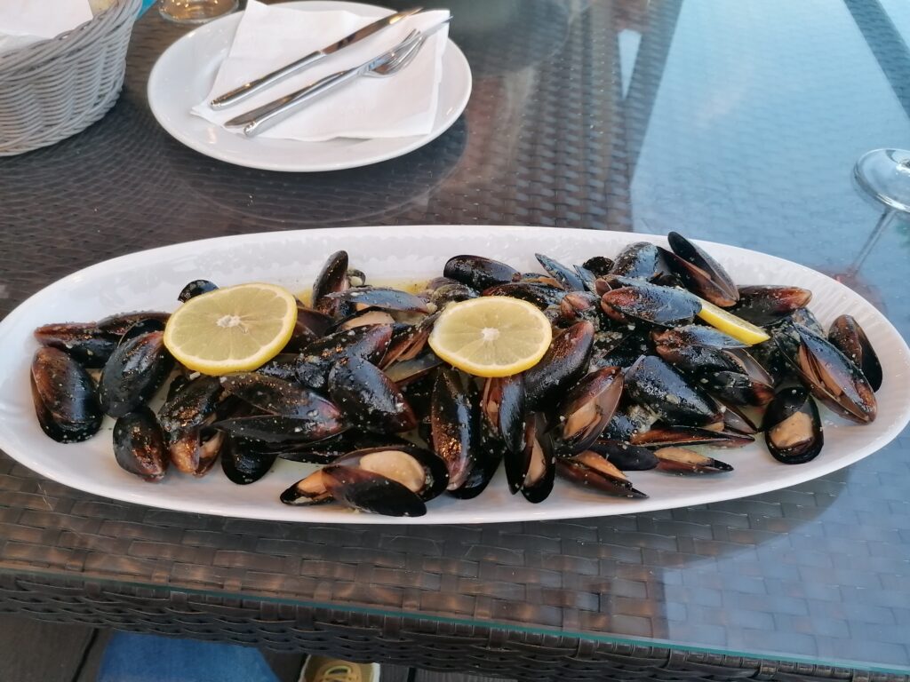 Das Abendessen war ausgezeichnet und die günstigen Preise stimmten uns fröhlich. Die Rechnung für uns zwei betrug € 26,00 für 1 kg Muscheln, ein Risotto,