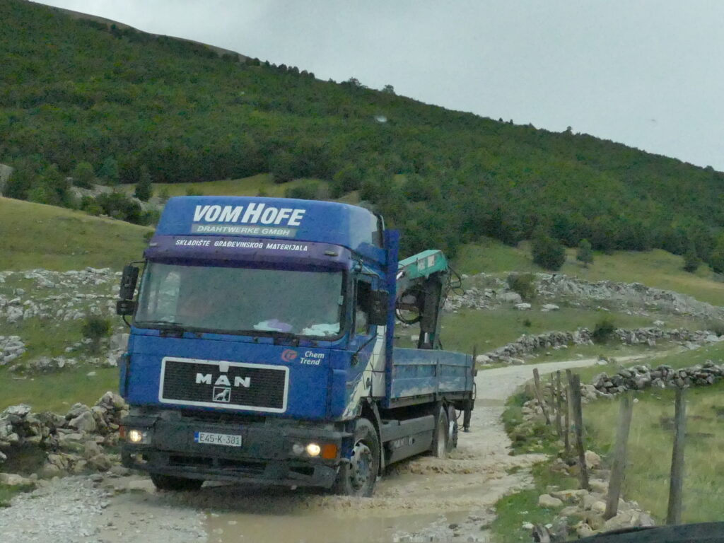 Die Piste wurde immer ruppiger und felsiger, mit einigen sehr hohen Felsstufen und dahinter liegenden Löchern bzw. Auswaschungen. Nur im Schritttempo und mit kleinster Untersetzung gelangten wir langsam die 9 km Richtung Konjic.