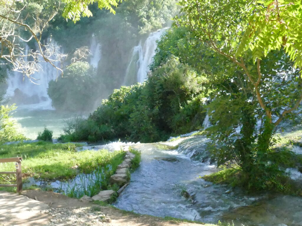Überraschender Weise führte der Fluss sehr viel Wasser und wir konnten das Tosen schon von weitem hören. In der Nähe des Besucherparkplatzes (mit Parkgebühr und Kiosk) geht eine Schotterpiste zum „Autocamp Ante“.