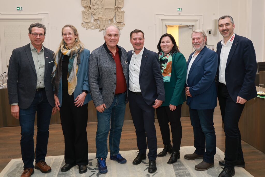 Im Bild: Landesrat Martin Zauner und Bartl Gensbichler, Vorsitzender der Landessportversammlung (Mitte) mit den Stellvertreterinnen und Stellvertretern der Landessportversammlung. V.l. Dietmar Juriga (ASVÖ), Kimbie Humer-Vogl (Leichtatheltik), Bartl Gensbichler, Vorsitzender der Landessportversammlung, Landesrat Martin Zauner, Carmen Kiefer (Eiskunstlauf), Herbert Steinhagen (UNION) und Josef Sailer (ASKÖ). Foto: Land Salzburg/Neumayr
